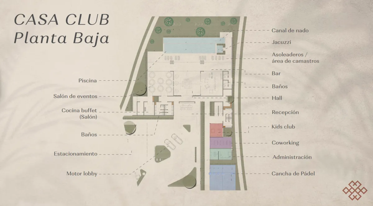 club con acabados de lujo, espacios de luz, paz y