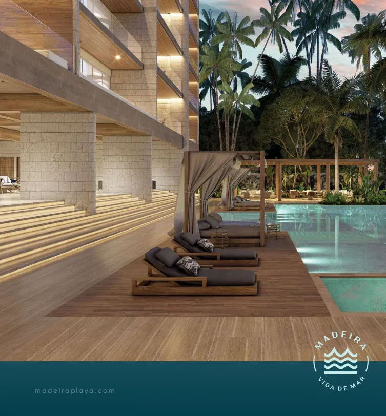 Madeira es una propuesta que eleva los estándares en la costa yucateca al privilegiar espacios generosos y bien distribuidos, amplios ventanales y balcones al exterior así como detalles y acabados de la más alta calidad y durabilidad con una paleta de colores cálidos y de texturas naturales.